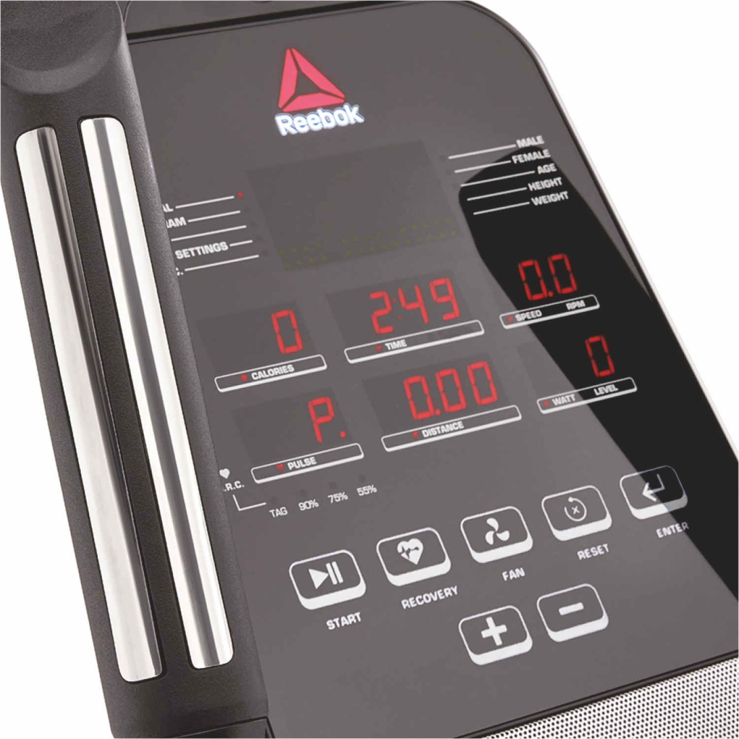 Display Reading Time, Speed, Distance, Pulse, Calories, Watts Incline, RPM