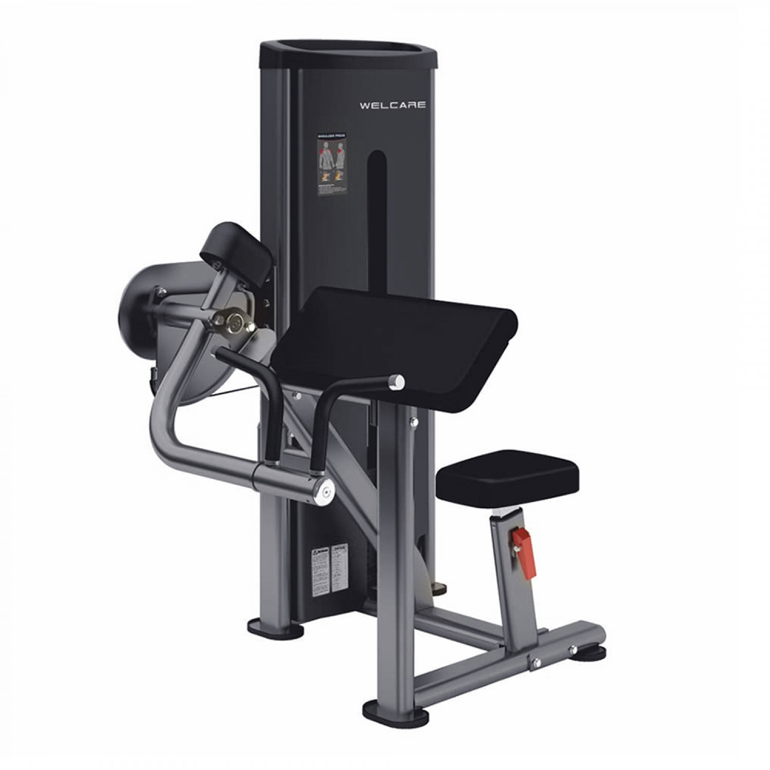 Forge a path to peak fitness with the WA006 BICEPS CURL, a pinnacle of modern engineering poised to redefine your strength training regimen. With dimensions measuring 1169x1118x1550mm (46”X44”X61”), this machine provides ample space for comfortable exercise sessions, ensuring both efficacy and comfort. Weighing 234Kgs, its robust construction guarantees stability and durability for sustained performance. Featuring a stack weight of 100Kgs, the WA006 BICEPS CURL offers adjustable resistance levels tailored to your fitness aspirations and progression. Crafted by Welcare Fitness Equipment, renowned for its unwavering dedication to quality and innovation, this biceps curl machine exemplifies excellence in every detail. Immerse yourself in the convenience and efficiency of the WA006 BICEPS CURL, and sculpt your way to stronger, more defined arms with each repetition.