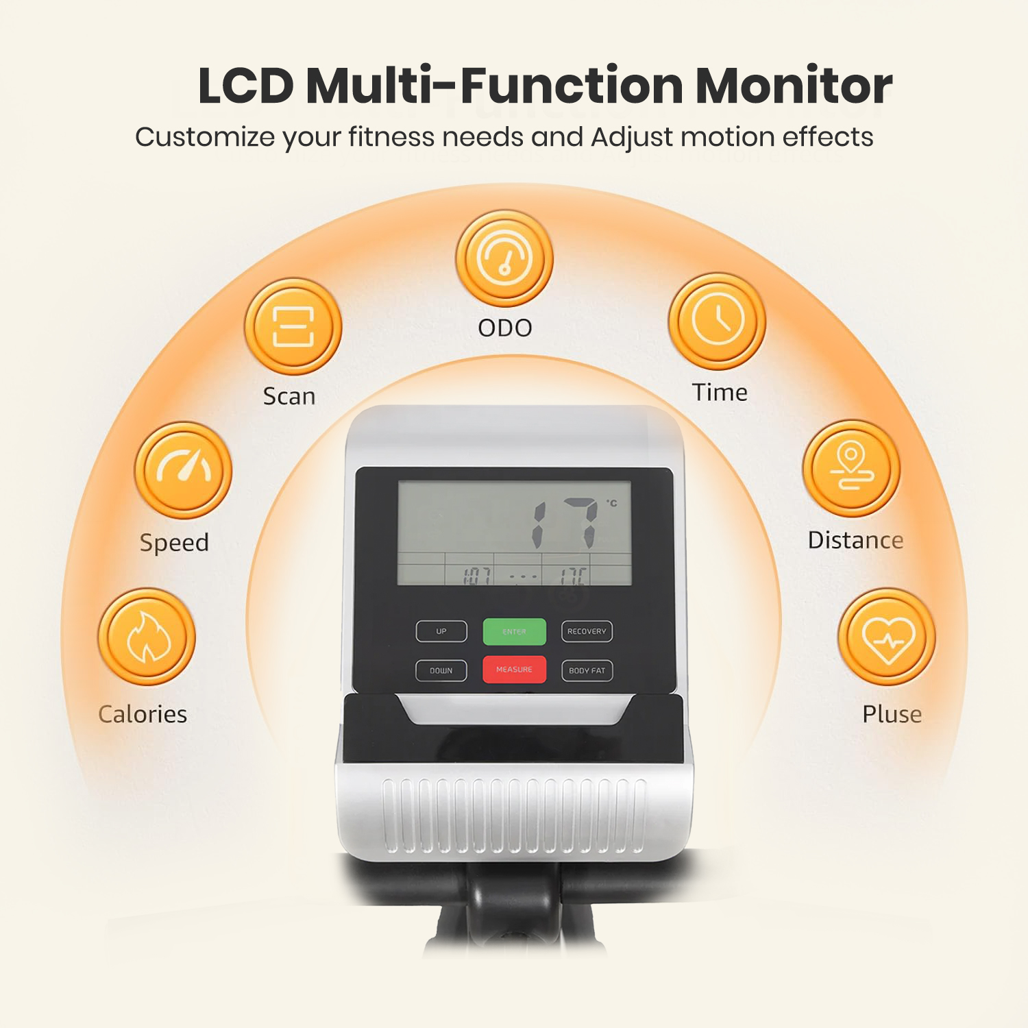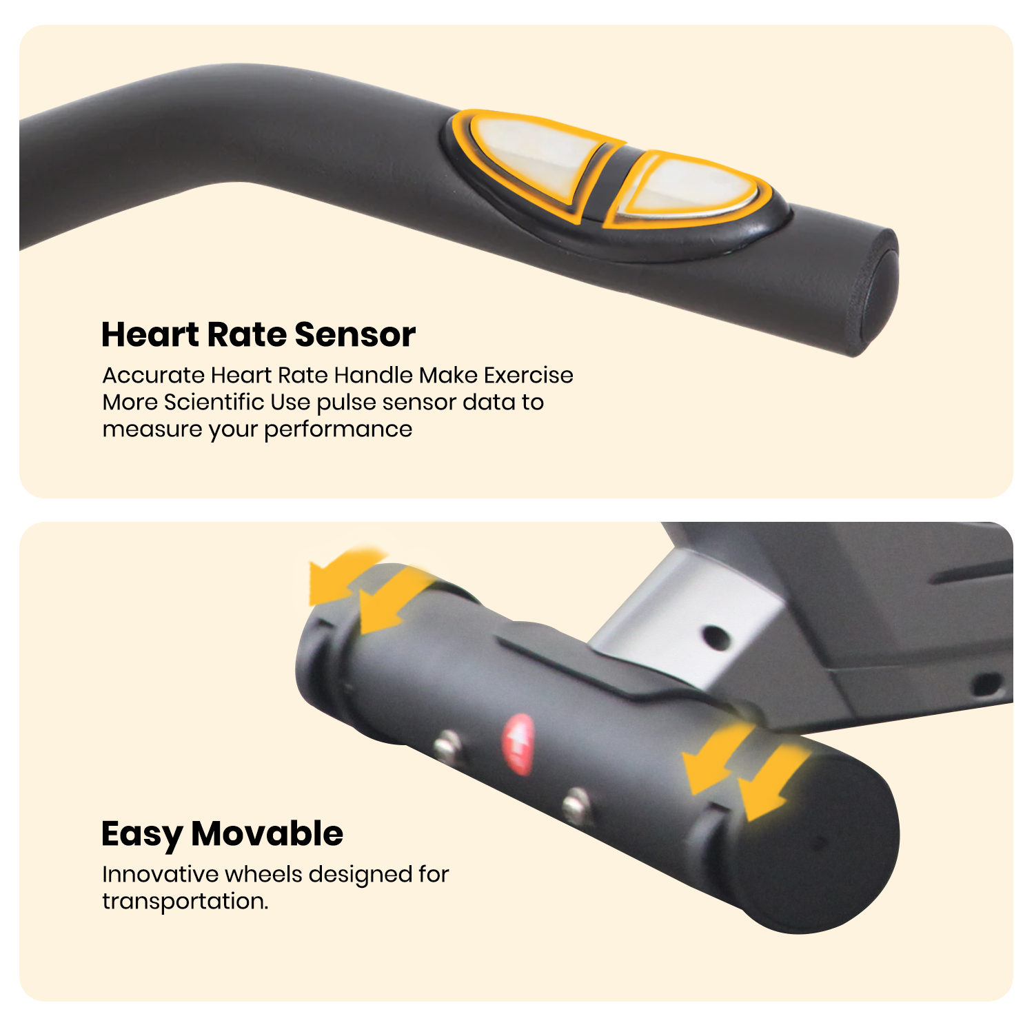 Engineered to provide a comfortable and efficient workout experience in the convenience of your home. Equipped with a 10 kg flywheel and offering 8 levels of manual magnetic resistance, the WC1588 ensures smooth and customizable resistance for users of varying fitness levels. Whether you’re aiming for a light warm-up or an intense cardio session, easily adjust the resistance to suit your preferences and fitness goals. The LCD display of the WC1588 presents essential workout metrics, including speed, time, distance, calories burned, pulse rate, and odometer readings. Keep track of your progress and stay motivated as you pedal your way to fitness.