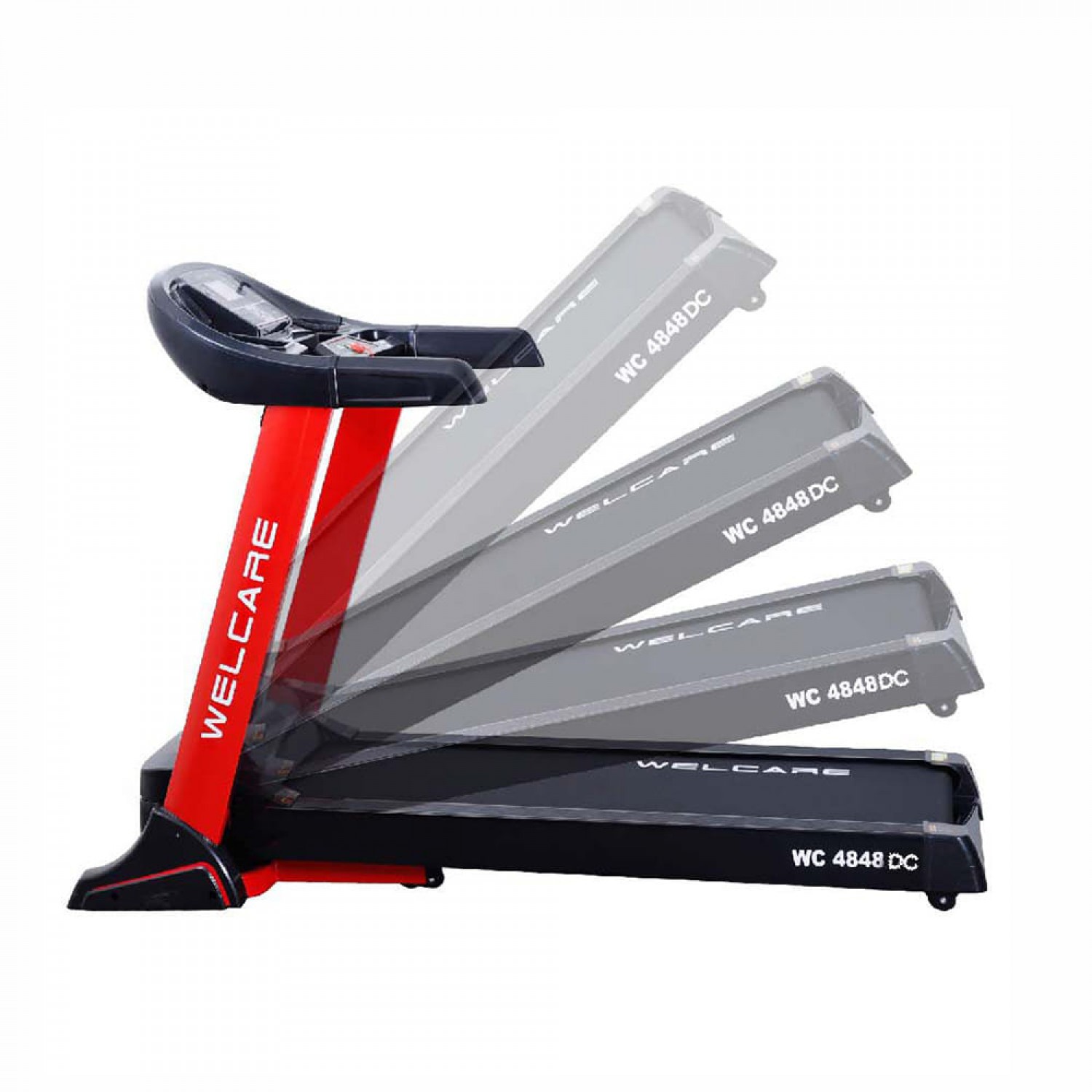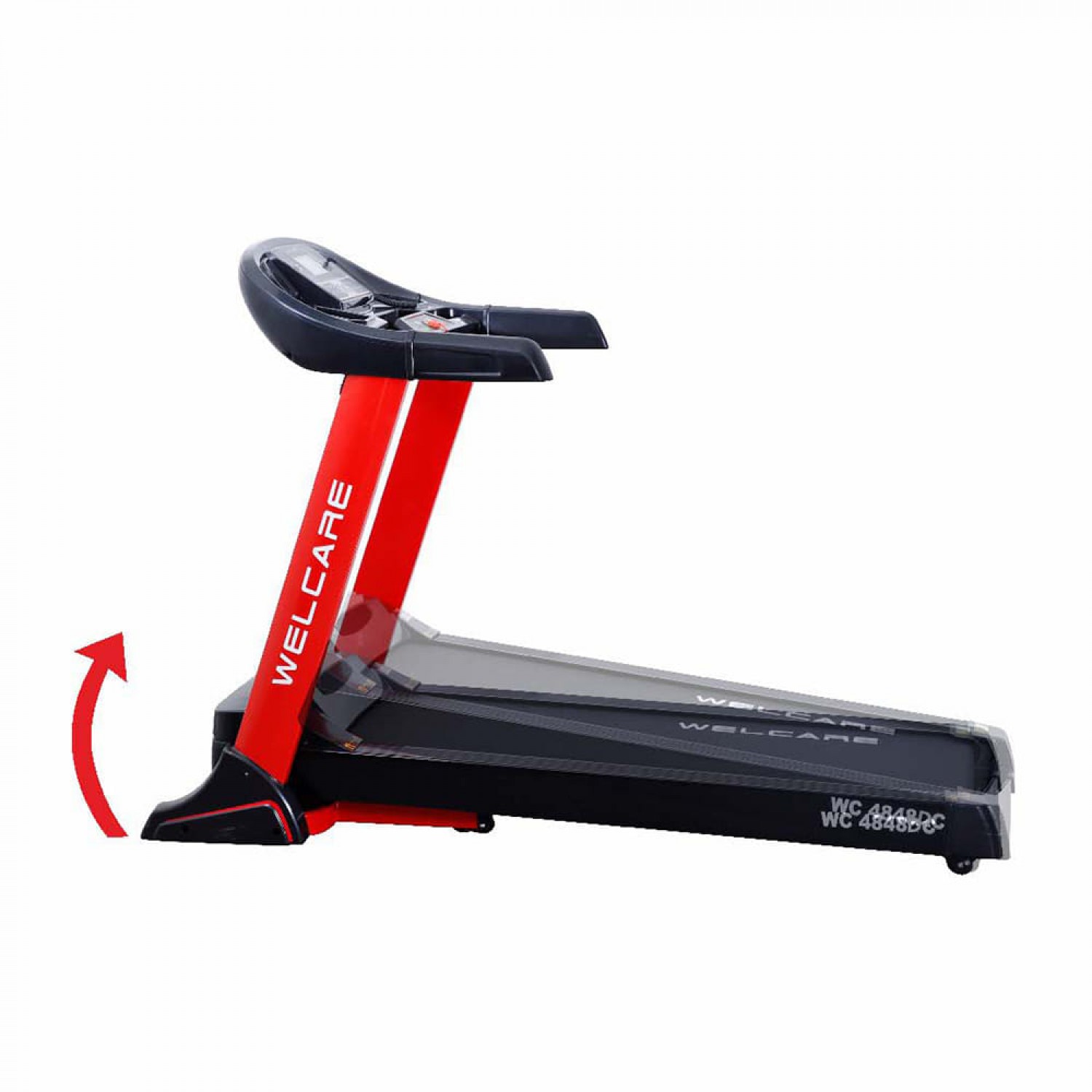 Step up your fitness game with the WC4848 DC Motorized Treadmill, meticulously crafted for dedicated runners and fitness enthusiasts. Featuring a powerful 2.5 / 5.0 -HP DC motor, this treadmill offers speeds up to 1–18 km/h and an impressive maximum incline of 18 Level Auto, allowing you to customize your workouts for optimal results. The extended running belt ensures a comfortable stride, while the integrated LCD display provides real-time progress updates to keep you motivated. Immerse yourself in your favorite tunes with integrated Bluetooth speakers, and stay cool throughout your workout with the built-in cooling fan. Safety is paramount, with features such as the safety key and emergency stop button. With its array of features, the WC4848 DC is the perfect addition to any home gym setup. Explore Welcare’s comprehensive range of gym equipment, including treadmills, ellipticals, and more, designed to cater to your fitness needs with unmatched quality and performance.