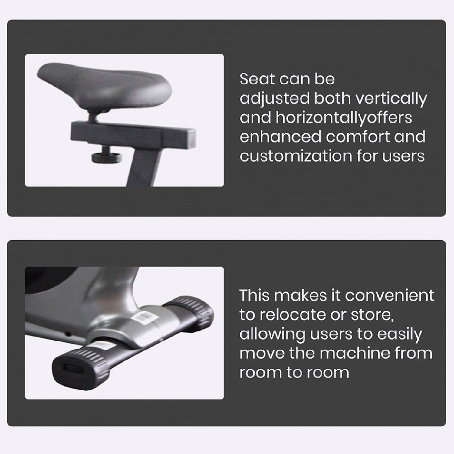 | Features | Seat can be adjusted Vertically & Horizontally, Easy Movable & Floor Stabilizer Bush, With Bluetooth APP (Fitshow and zwift, kinomap ) |