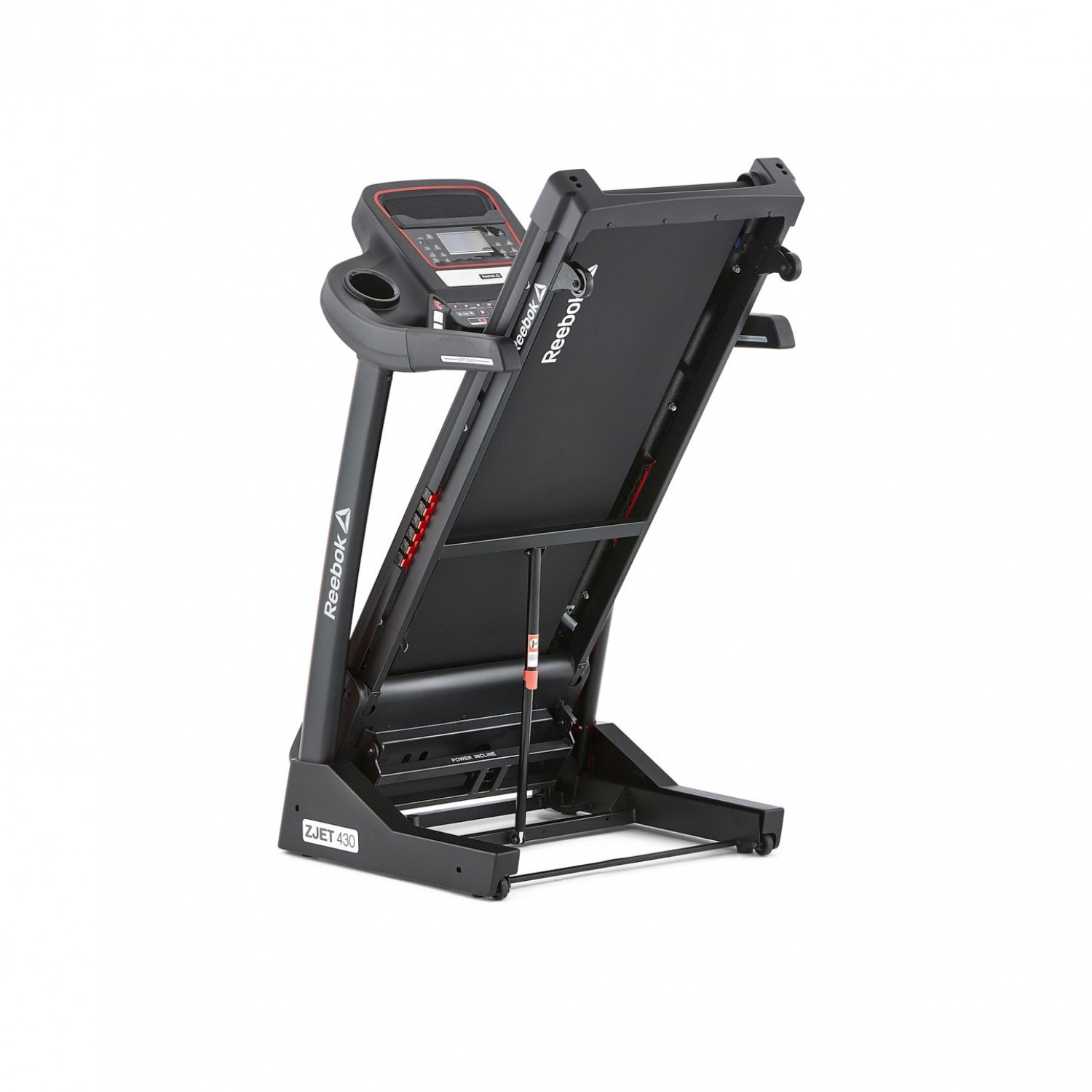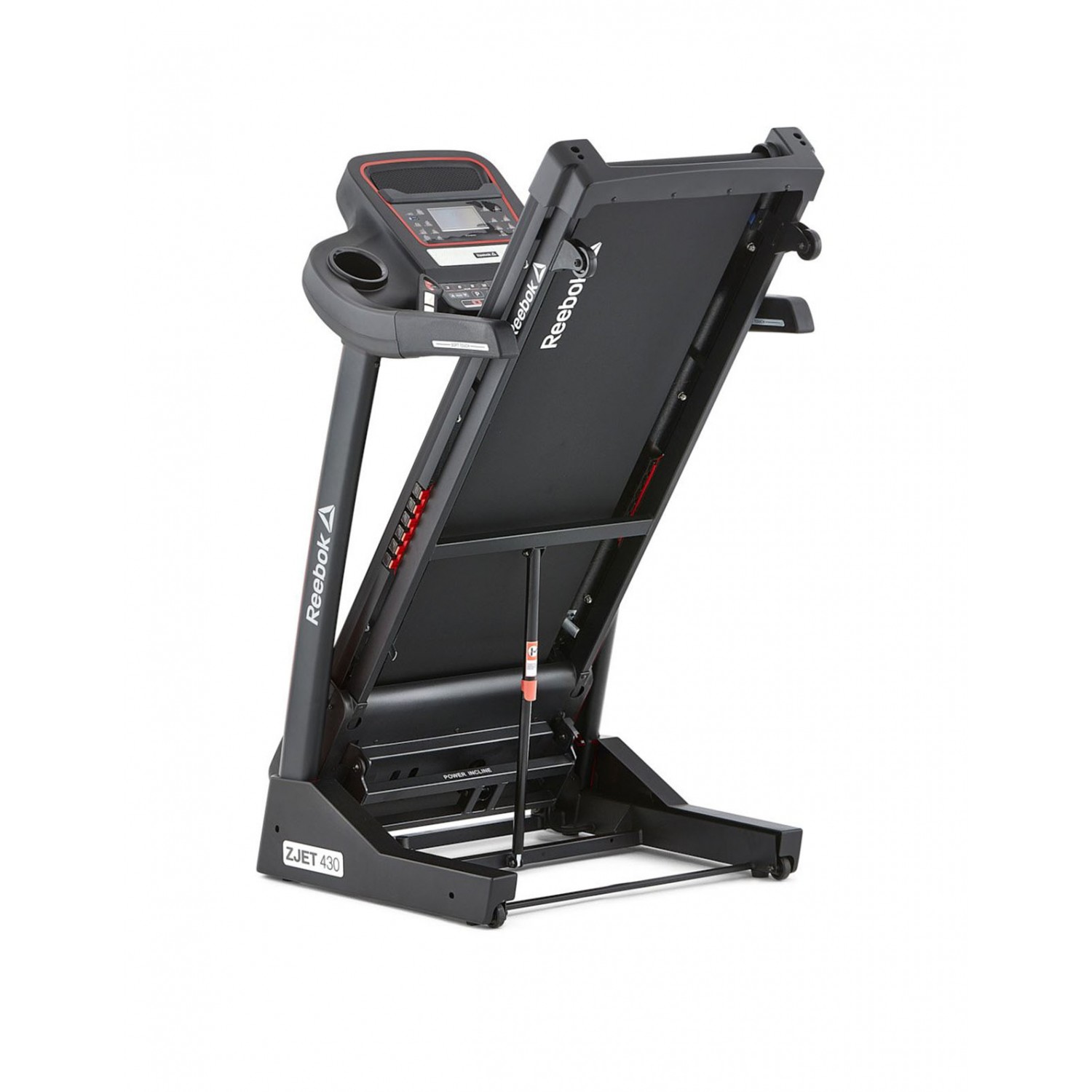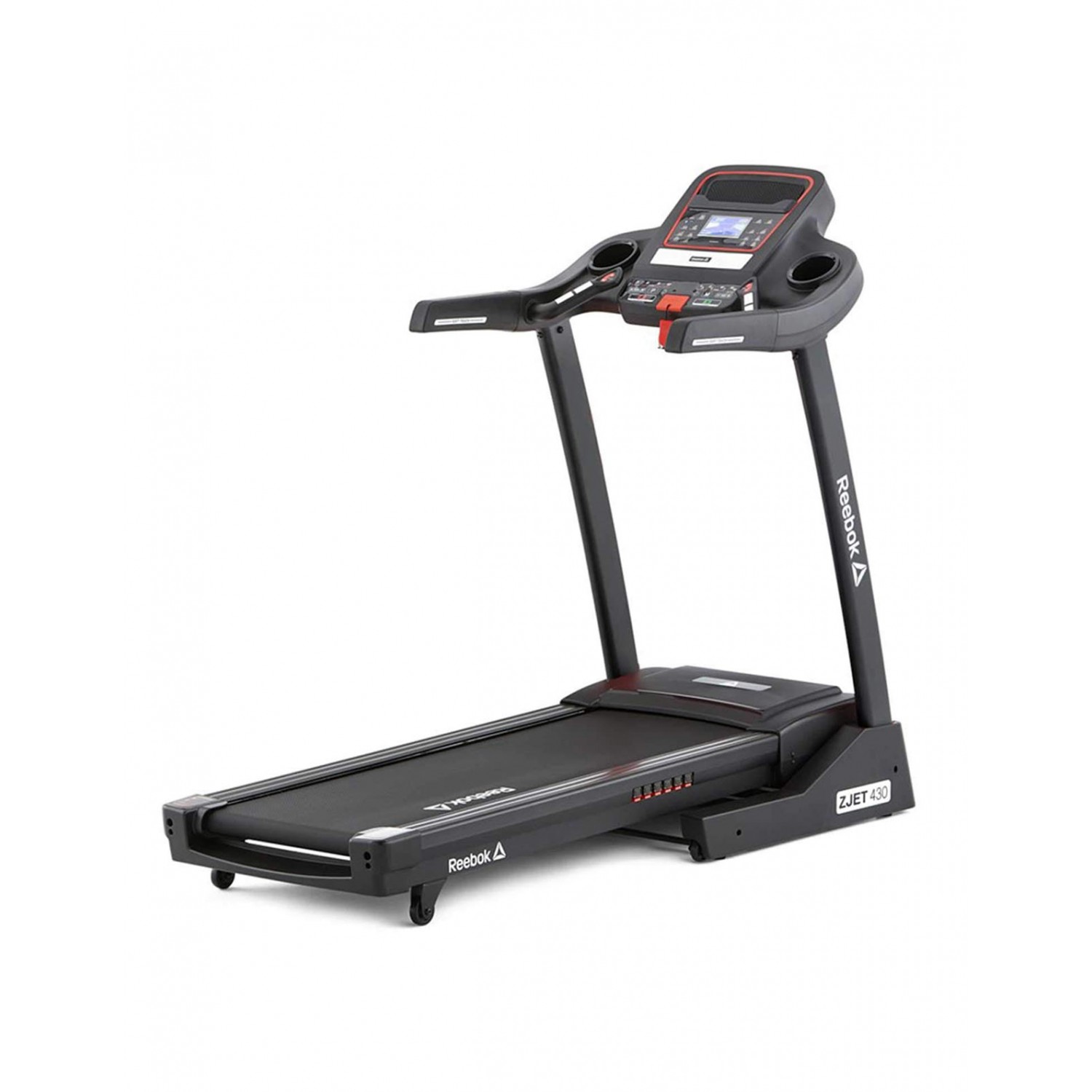 | Features | ZJET Cushioning Technology 24 Pre-set Programs, Bluetooth Reebok App connectivity via dongle (included), Direct Speed and incline shortcuts plus incremental buttons on handle bars Mobile device holder with safety grip texture, MP3 connectivity and Built-in Speakers Safe and simple soft-drop folding mechanism, Auto stop safety system Built-in transport wheels, Integrated hand grip pulse sensors, Padded soft touch handlesZJET430 MOTORIZED TREADMILL |