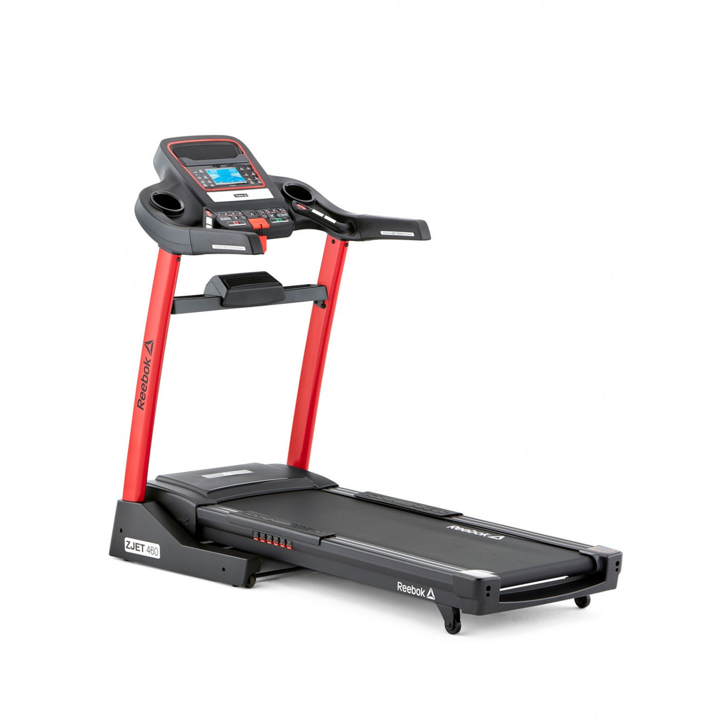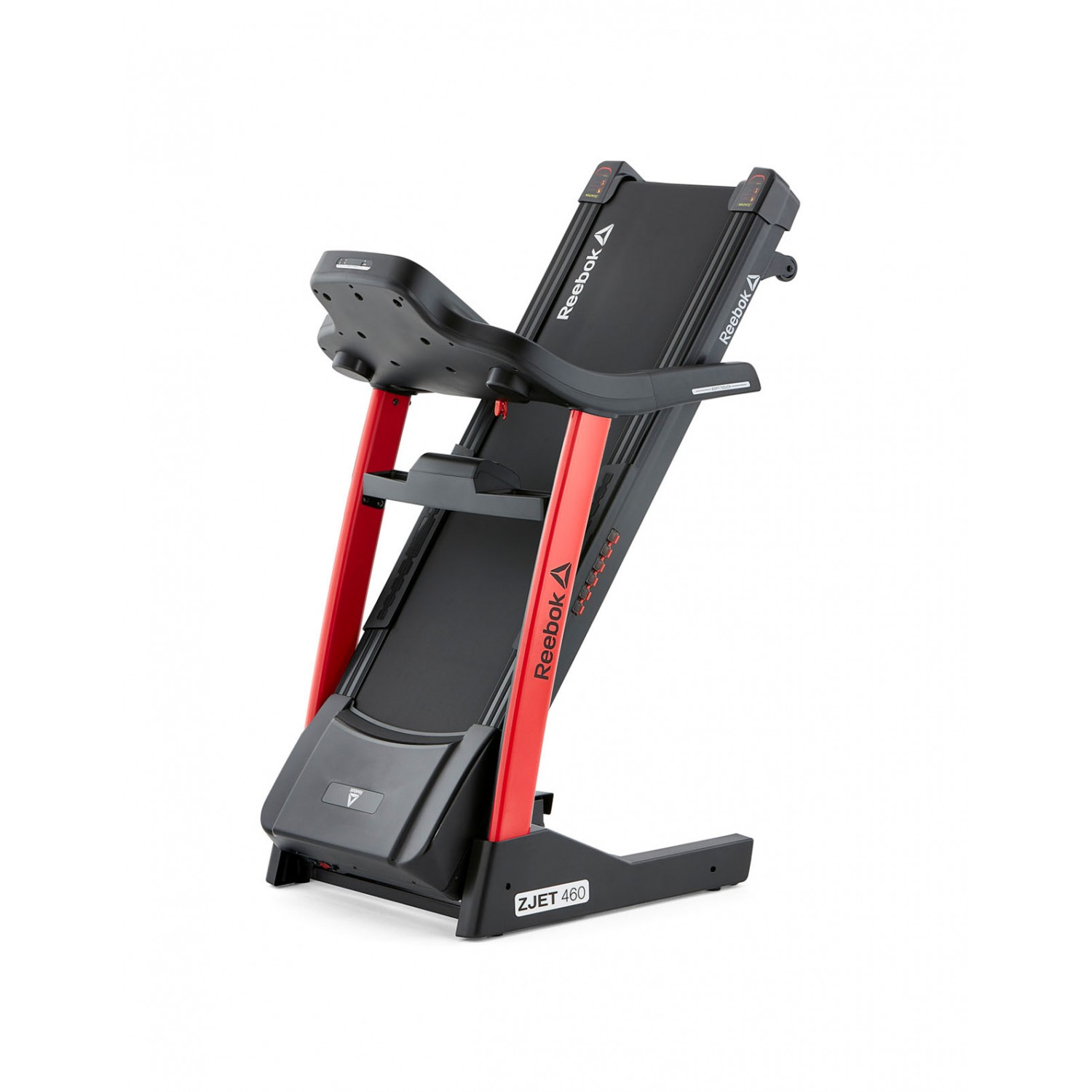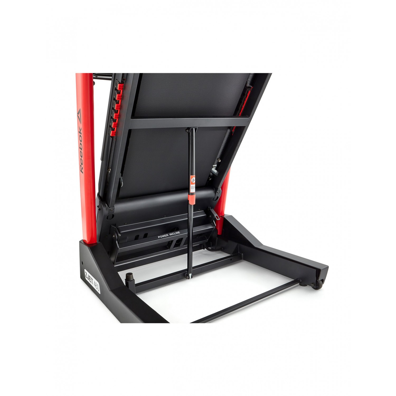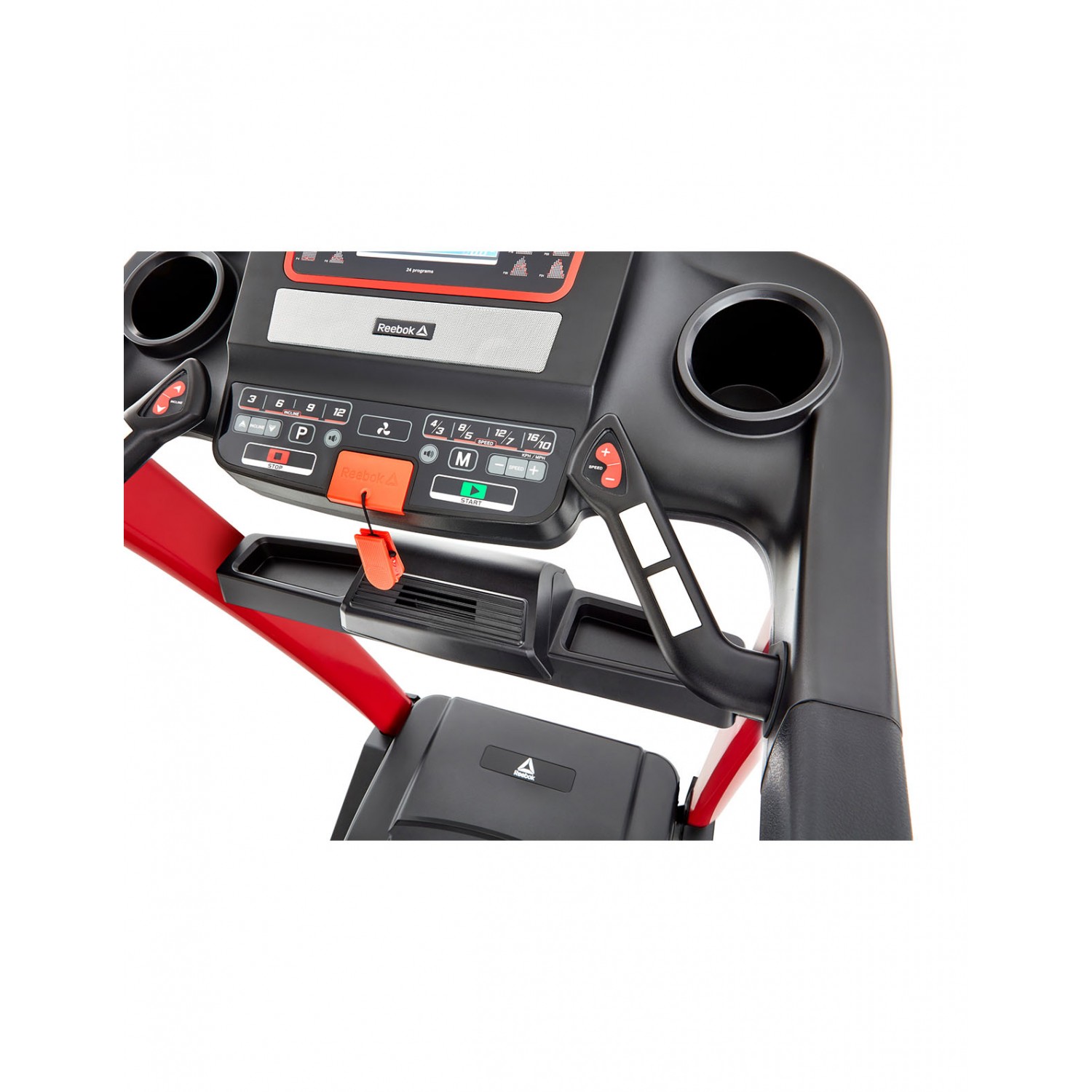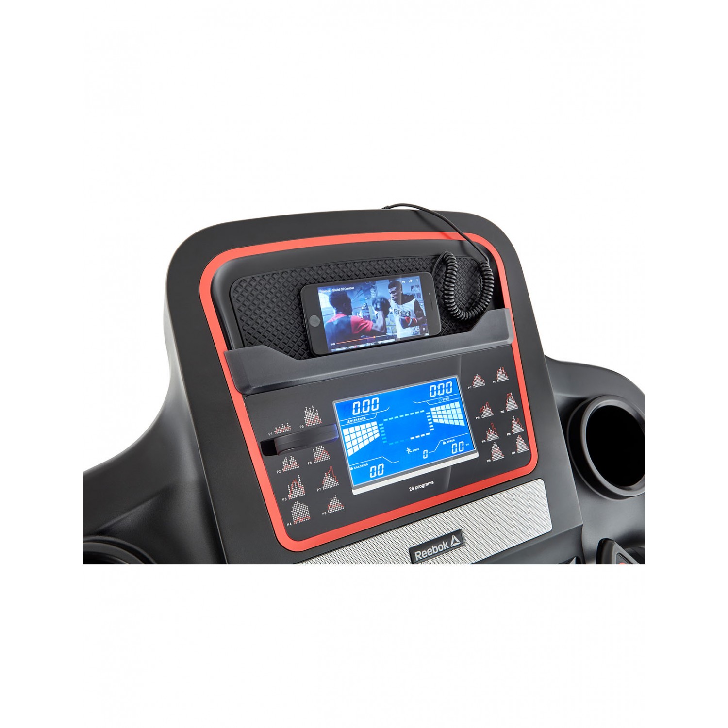 | Features | Built-in Cooling Fan ZJET Cushioning Technology 24 Pre-set Programs, Bluetooth Reebok App connectivity via dongle (Included) Direct Speed and incline shortcuts plus incremental buttons on handle bars Mobile device holder with safety grip texture, MP3 connectivity and Built-in Speakers Safe and simple soft-drop folding mechanism Auto stop safety system Built-in transport wheels, Integrated hand grip pulse sensors, Padded soft touch handles |