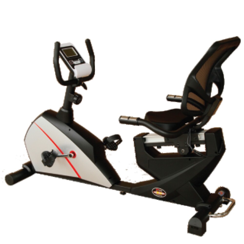 DELUXE MAGNETIC RECUMBENT BIKE. 8 LEVEL MANUAL TENSION CONTROL. STEP THROUGH FRAME FOR EASY ACCESS. STYLISH AND PRACTICAL FITKING DESIGN. ERGONOMICS DIMENSIONS ENABLE COMPLETELY NATURAL AND EFFECTIVE TRAINING. COMPUTER DISPLAY TIME, DISTANCE, SPEED, CALORIE PULSE WITH IPAD / SMART PHONE HOLDER. COMPLETELY ADJUSTABLE, COMFORTABLE SEAT AND BACK REST THAT COMPLIES WITH ERGONOMICS. 6KG. OF ROTATING MASS ENSURES SMOOTH AND DYNAMIC MOVEMENT. SMOOTH PEDAL MOVEMENT AND 3 PCS. STRENGTHENED CRANK.