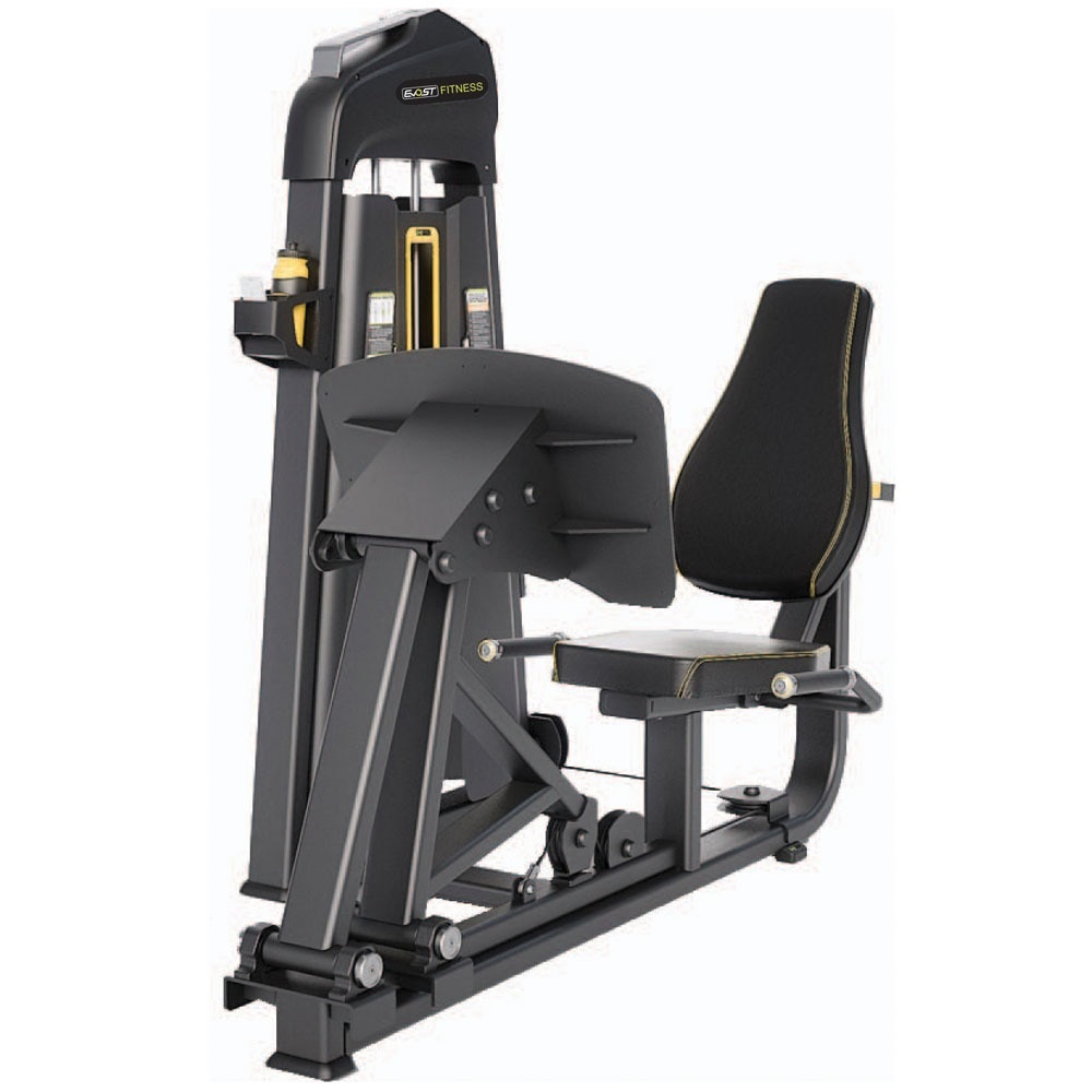 SEATED LEG PRESS LARGE STURDY FOOT PLATE AND VARIABLE RESISTANCE CAM IS DESIGNED TO REGULATE THE LOAD THROUGHOUT THE EXERCISE, TO ENSURING THE CORRECT MUSCLE ARE TARGETED. INTELLIGENT ERGONOMIC DESIGN WITH ADJUSTABLE BACK SUPPORT PAD. SMOOTH RUNNING CAM SYSTEM GIVES A SAFE, EFFICIENT WORKOUT. ALL ADJUSTMENTS ARE IDENTIFIED WITH YELLOW KNOBS FOR EASY RECOGNITION. 5/16" DIAMETER WEIGHT SELECTOR PIN MAGNETICALLY LOCKS IN PLACE AND INCLUDES A LANYARD TO PREVENT INJURY. PLACARDS PLACED IN THE MOST VISIBLE POSITION, PROVIDE STEP-BY-STEP INSTRUCTIONS, AS WELL AS PICTURES ILLUSTRATING PROPER USE AND MUSCLES TARGETED. HAND GRIPS SECURED IN PLACE WITH ALUMINUM COLLARS, COMPRISED OF AN EXTRUDED RUBBER COMPOUND THAT IS NON ABSORBING AND WEAR RESISTANT. Length: 1400 mm Width: 1000 mm Height: 1500 mm Machine Weight: 227 kg. Weight Stack: 109 kg.